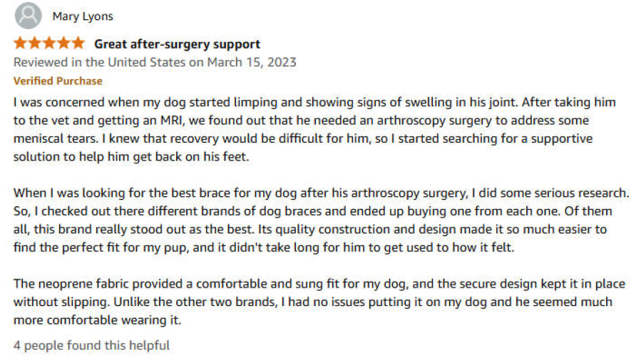 "After Max’s ACL surgery, he refused to move. This brace changed everything. He wore it all day without fuss, and within weeks, he was chasing squirrels again!" — Sarah T., Colorado