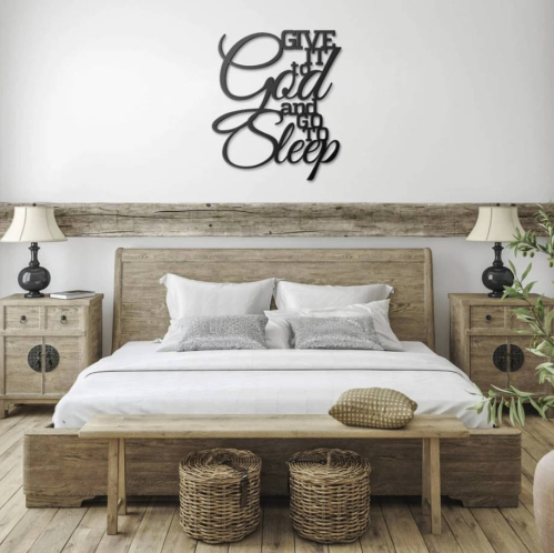 "Give It to God & Go to Sleep" Cursive Metal Wall Art | Peaceful Christian Decor
