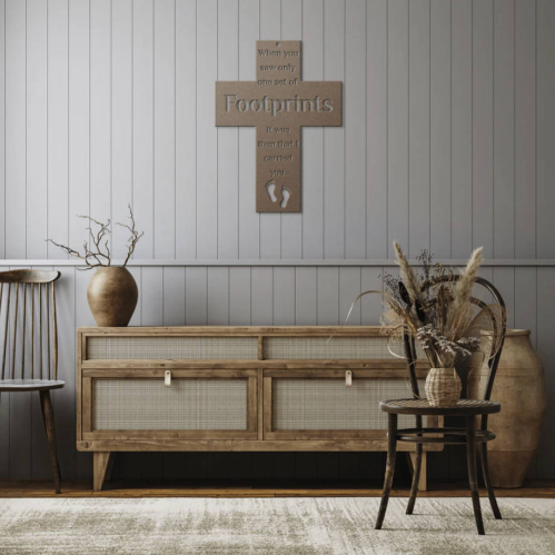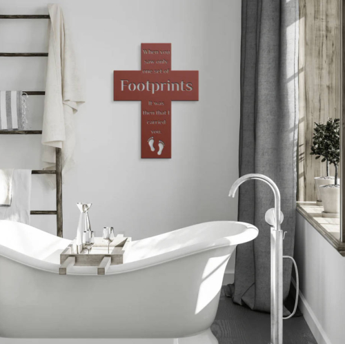 Make a striking, faith-filled statement in your home or garden in 2025 with the #185 Footprints in the Sand Cross Metal Wall Art. A central Feature is its stunning craftsmanship: a cross-shaped design beautifully plasma cut from durable, 18-gauge American steel and finished with a resilient powder coating available in multiple colors. This specialized construction provides a key Advantage—it is built lightweight yet exceptionally durable, guaranteed not to bend or warp, and tough enough to outlast harsh outdoor weather for years. This makes it a versatile talking piece, equally suitable for becoming the center of attention in a living room or welcoming guests when displayed outside. Furthermore, your purchase is risk-free and supports a local Christian business, backed by a 100% satisfaction guarantee and free shipping. The profound Benefit is the constant, comforting reminder that God carries us through every trial, allowing you to stylishly and proudly display your deep Christian faith every single day.