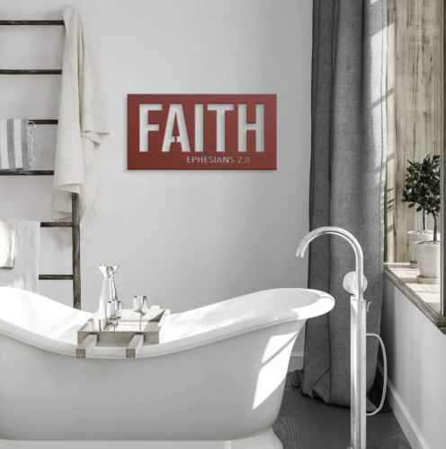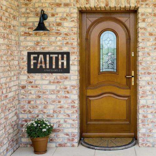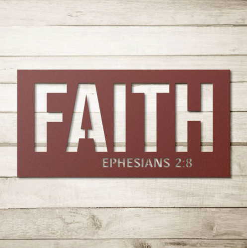 Make a profound, modern statement of belief in your space with the #99 "FAITH" Metal Sign, inspired by the powerful Scripture, Ephesians 2:8 ("For it is by grace you have been saved through faith."). The central Feature of this unique piece is the large, bold, block lettering that is precision laser-cut from durable 18-gauge American steel and finished with a resilient powder coating. This ensures the art is lightweight, resistant to bending or warping, and capable of enduring harsh outdoor weather for years. The key Advantage is its profound simplicity, blending modern elegance with spiritual meaning, instantly becoming a powerful focal point and great conversation starter. This high-quality purchase is risk-free—it's backed by a 100% satisfaction guarantee, includes free shipping, and supports a local Christian business. The lasting Benefit is the constant, tangible daily reminder of the strength, grace, and confidence found in your faith.